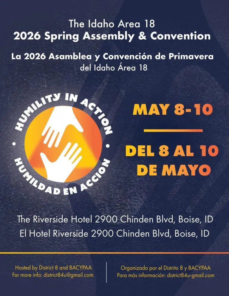 Join us for the Idaho Area 18 Spring Assembly & Convention — a full weekend dedicated to unity, service, and recovery. Whether you’re active in service or simply want to feel connected again, this event is where voices are heard, ideas are shared, and fellowship comes alive.